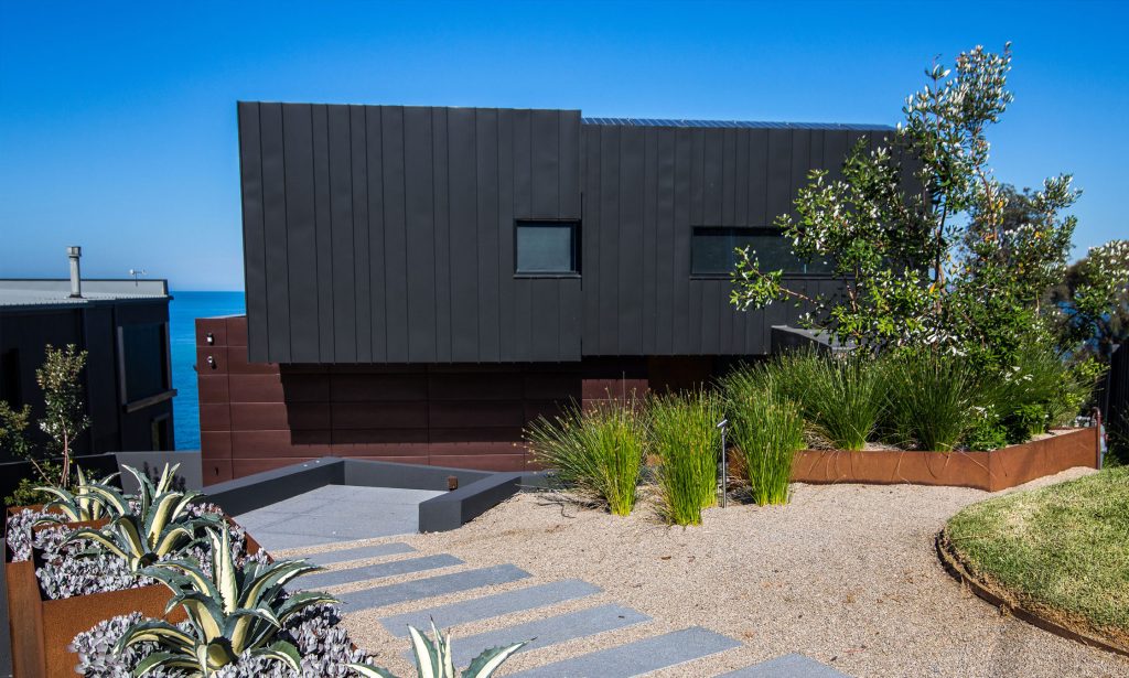 a new build comprising of three levels cut into a steep seaside site at somers on the mornington peninsula. this project commenced with a bulk excavation, boundary piling and retaining walls. the lower ground floor is on a slab on ground with core filled blockwork, which is cut into the hillside is made up of home cinema, steam/powder room, indoor/outdoor living. the area can be opened up with expansive sliding doors, bringing together the swimming pool outdoor kitchen and living areas.