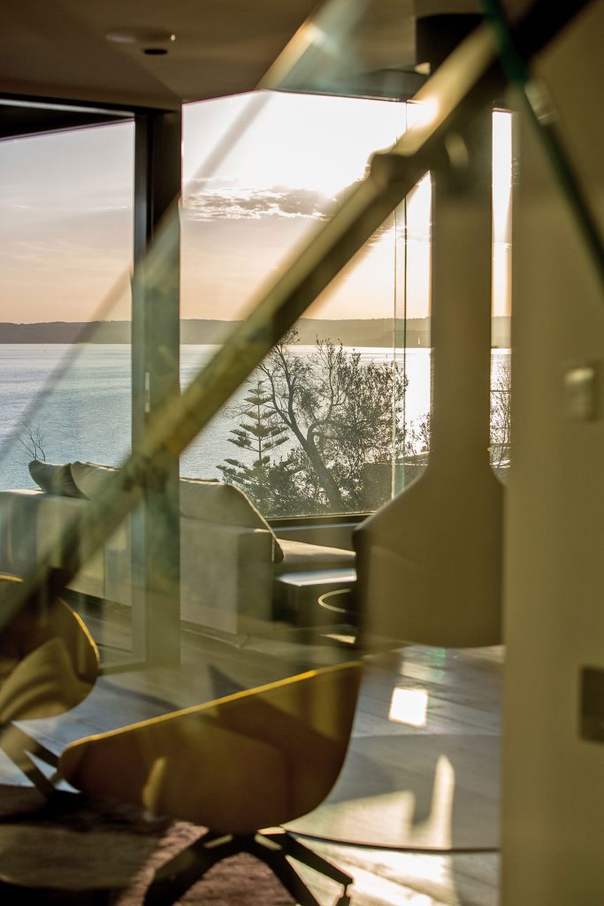 every room in this house takes advantage of natural light and the spectacular location and pprovides view lines through to the water. some areas including the study and guest bedroom use secondary view points through adjoining rooms. the study uses the highlight atrium windows nad the main living room window to provide an additional view line to the water edge below.