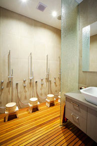 ‘Torotei’ (lantern house), although distinctive against the traditional beachside dwelling, provides a sinuous cultural traverse to the time-honored Japanese bathing styles this bathroom pays homage to. Comprising unsurpassed technological quality, this bathroom also manages to immerse its occupants in ancient traditions not well known outside Japanese bathing rooms. The ambiguous nature of technology versus tradition strikes an unusual balance.