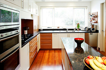 A clever reformation and two storey addition has transformed what was a plain 50's house into a modern contemporary home. This cleverly designed home incorporates stone, natural timber, customised tiling and innovative use of moveable screens to create a very personalised and bold result.